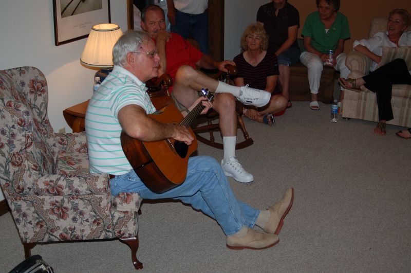 Dave Corrie entertains as Jerry Cooper,Sue Shadwick Sanders,Linda Corrie(class of 1962),and Marsha Starbuck look on.